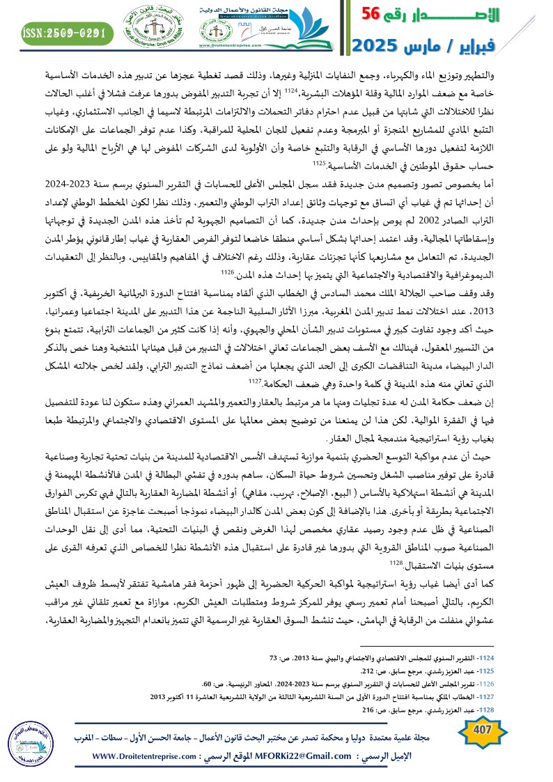 – عبد العزيز رشدي، تدبير المدن بالمغرب، أية حكامة وأية رهانات، منشورات المجلة المغربية للأنظمة القانونية والسياسة العدد الخاص رقم: 11 ، التعمير والحكامة المجالية وفق اخر المستجدات التشريعية والقضائية؛