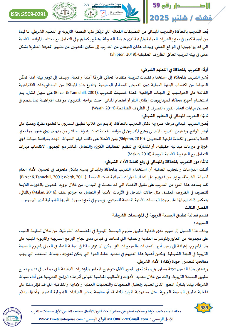 الفصل الثاني: تطبيقات البصمة التربوية في التعليم والتدريب الشرطي: