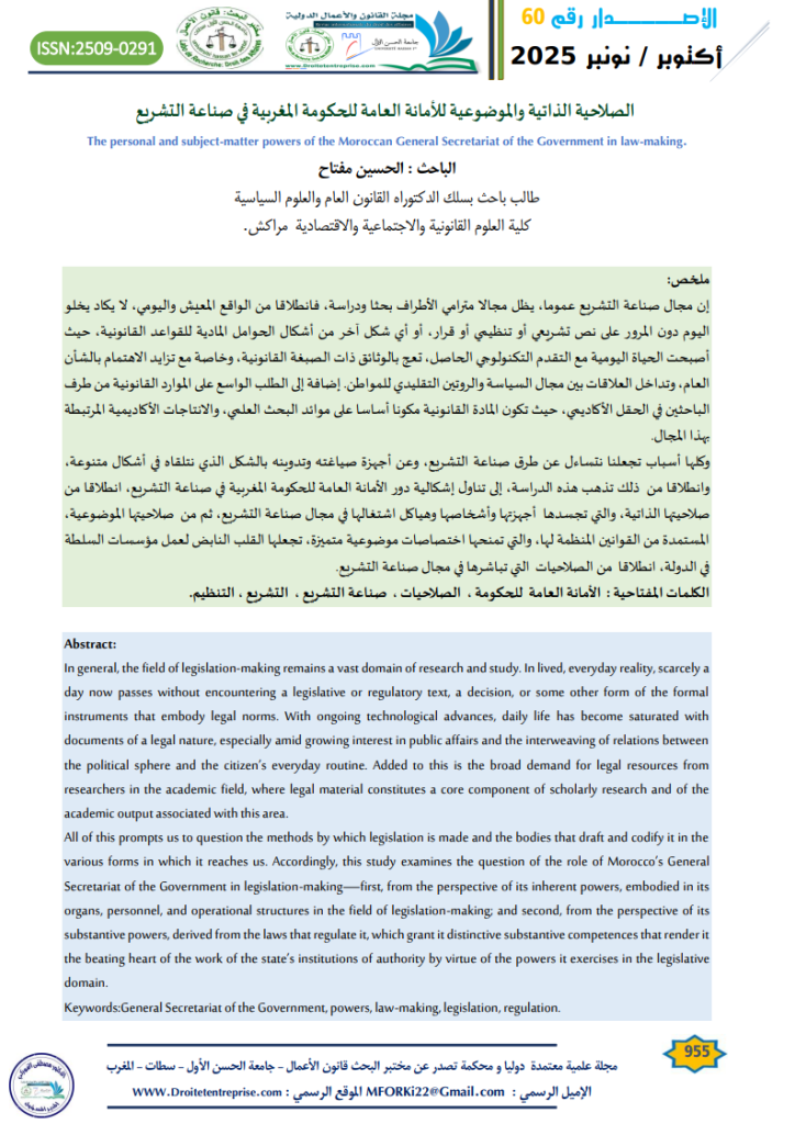هذا البحث منشور في مجلة القانون والأعمال الدولية الإصدار رقم 60 الخاص بشهر أكتوبر/ نونبر 2025