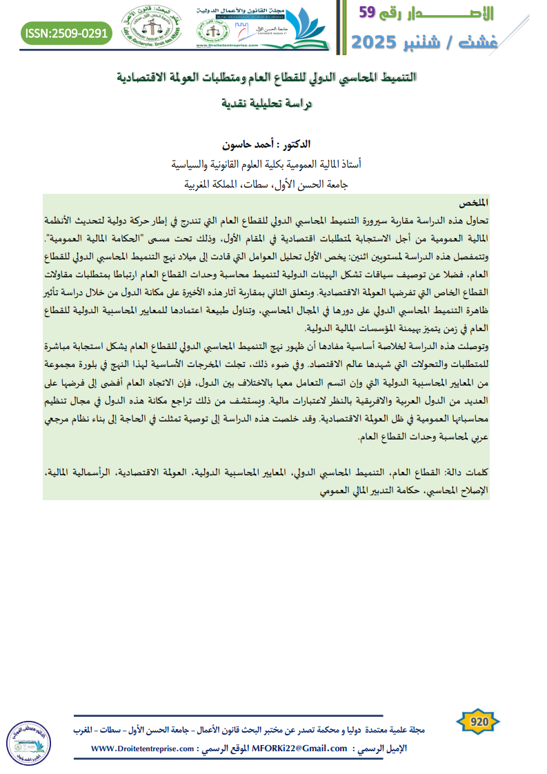 التنميط المحاسبي الدولي للقطاع العام ومتطلبات العولمة الاقتصادية دراسة تحليلية نقدية الدكتور : أحمد حاسون