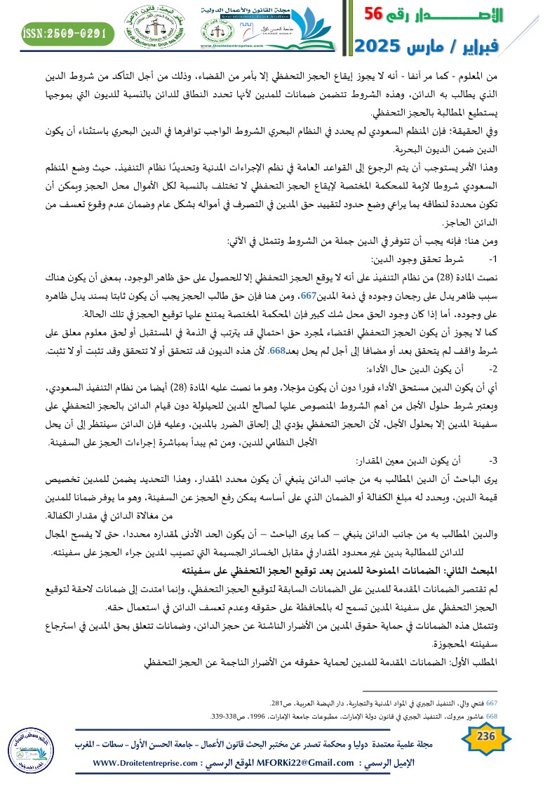 The Guarantees Granted to the Debtor in the Precautionary Seizure of Their Ship Under the Saudi Maritime Commercial Law: A Comparative Study