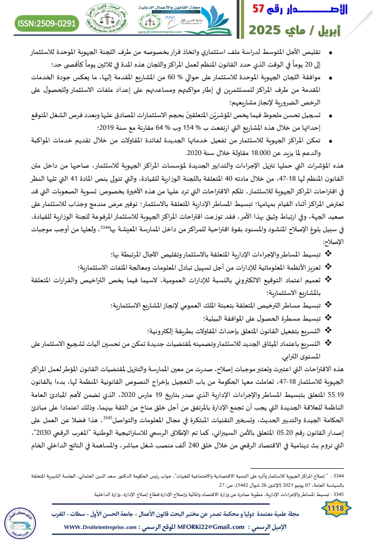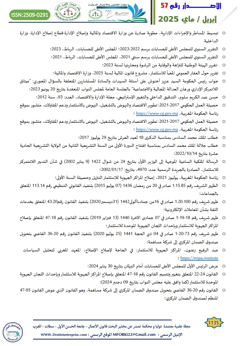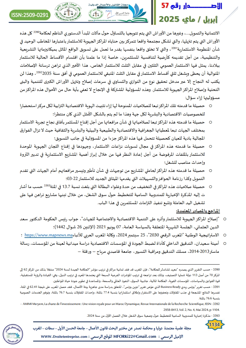 [54] – عبد الرفيع زعنون، المراكز الجهوية للاستثمار: في الحاجة لإصلاح الإصلاح، المعهد المغربي لتحليل السياسات https://mipa.institute، اطلع عليه بتاريخ: 17/12/2024، الساعة: 15.45.