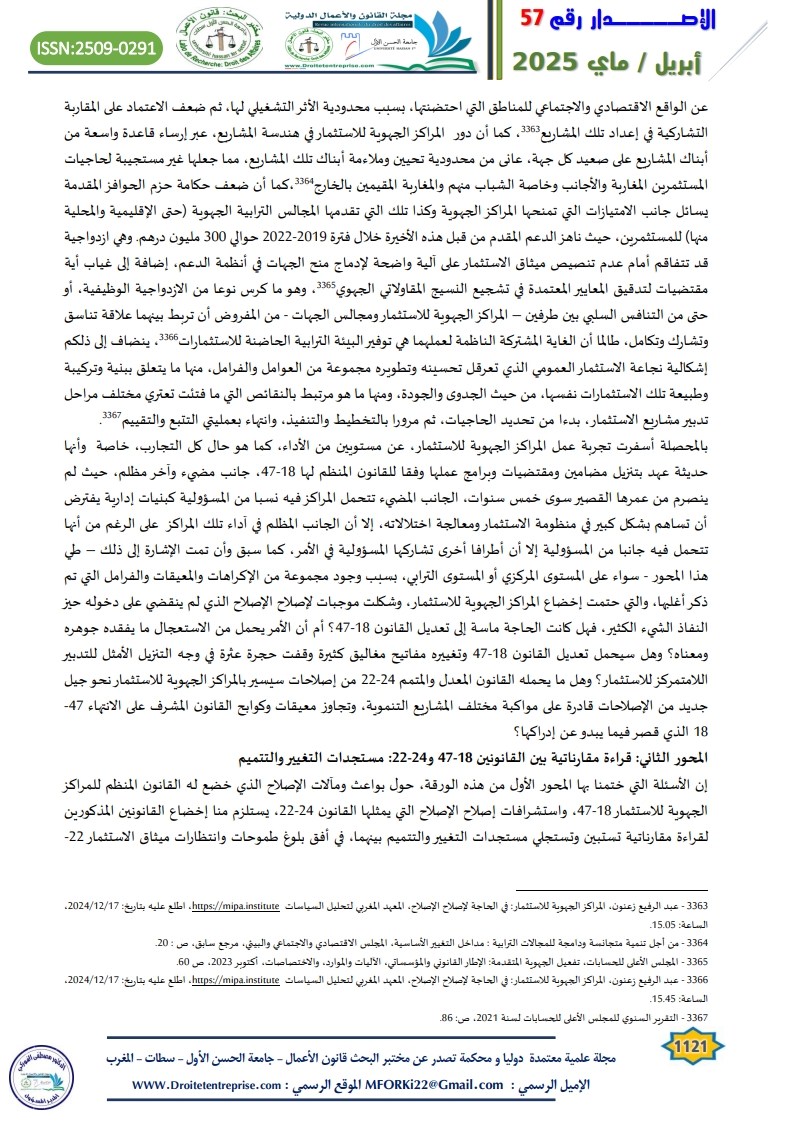 [51] – عبد الرفيع زعنون، المراكز الجهوية للاستثمار: في الحاجة لإصلاح الإصلاح، المعهد المغربي لتحليل السياسات https://mipa.institute، اطلع عليه بتاريخ: 17/12/2024، الساعة: 15.05.