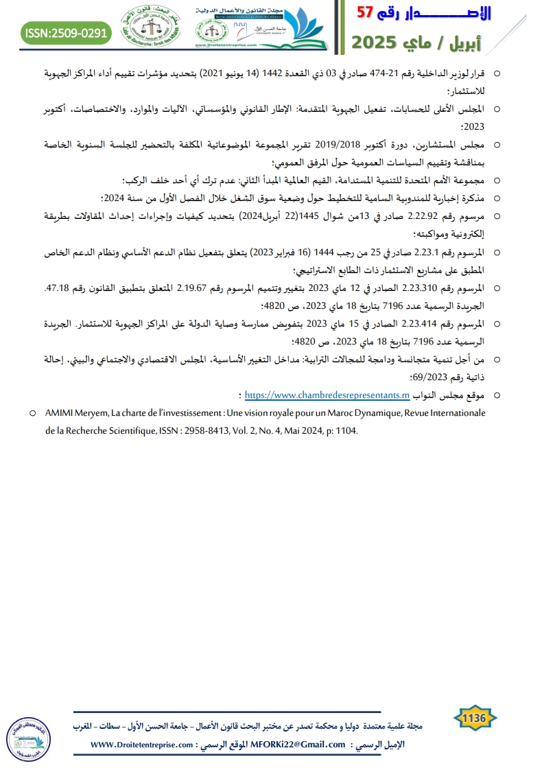 AMIMI Meryem, La charte de l’investissement : Une vision royale pour un Maroc Dynamique, Revue Internationale de la Recherche Scientifique, ISSN : 2958-8413, Vol. 2, No. 4, Mai 2024, p: 1104.