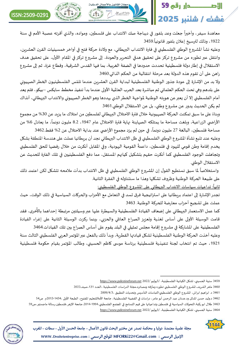 أولاً: المشروع الوطني الفلسطيني في ضوء سياسات الانتداب البريطاني.