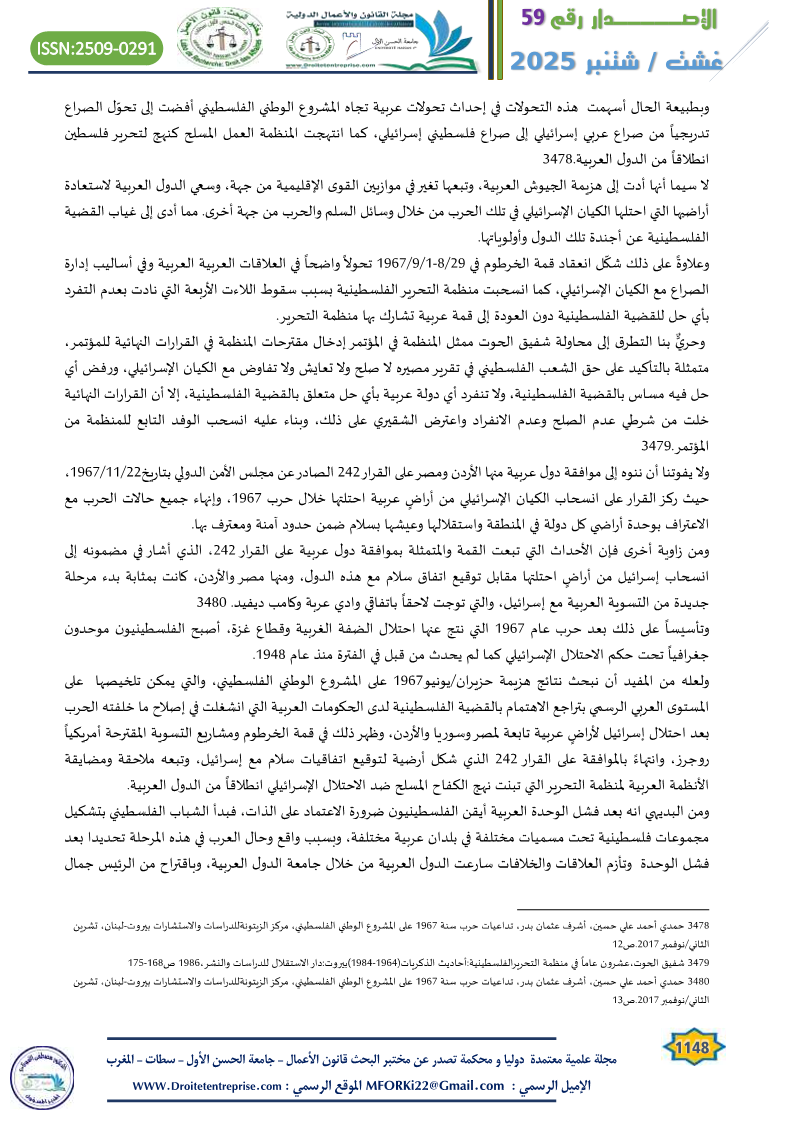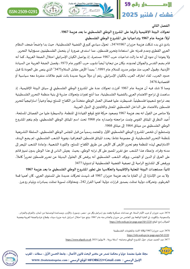 تحولات البيئة الإقليمية وأثرها على المشروع الوطني الفلسطيني ما بعد هزيمة 1967.