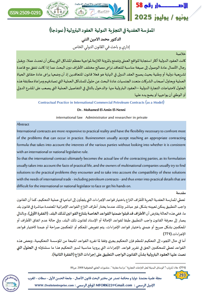 الممارسة العقدية في التجارية الدولية العقود البترولية ( نموذجا ) – الدكتور محمد الامين النني