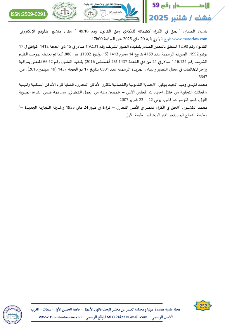 ياسين الصبار، “الحق في الكراء كضمانة للمكتري وفق القانون رقم 49.16 ” مقال منشور بالموقع الإلكتروني www.maroclaw.com تاريخ الولوج إليه 20 ماي 2025 على الساعة 17h00.