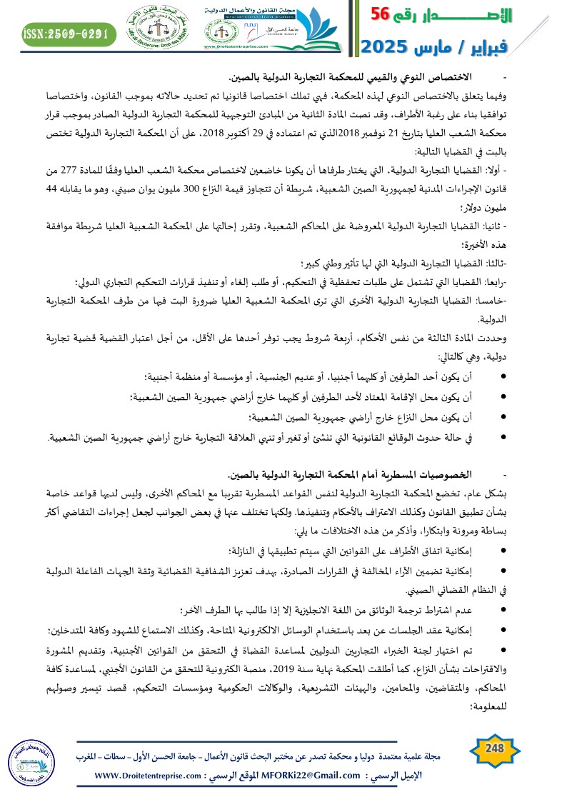 – الخصوصيات المسطرية أمام المحكمة التجارية الدولية بالصين.