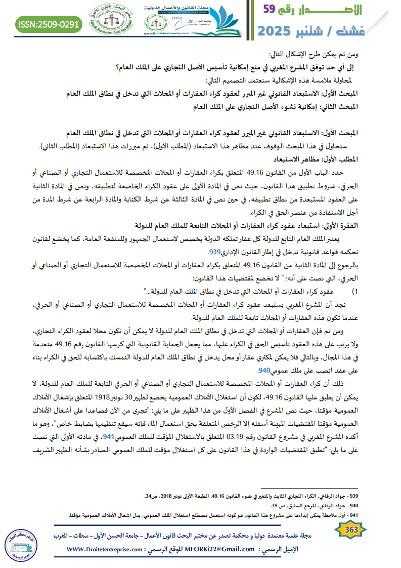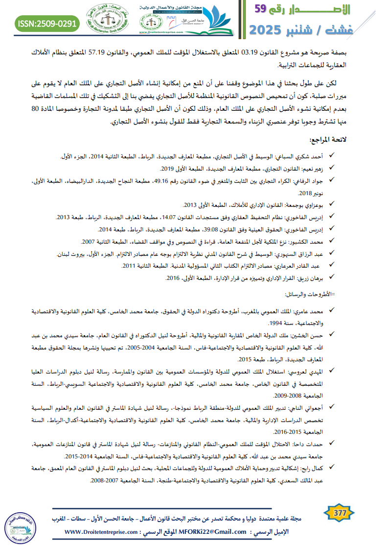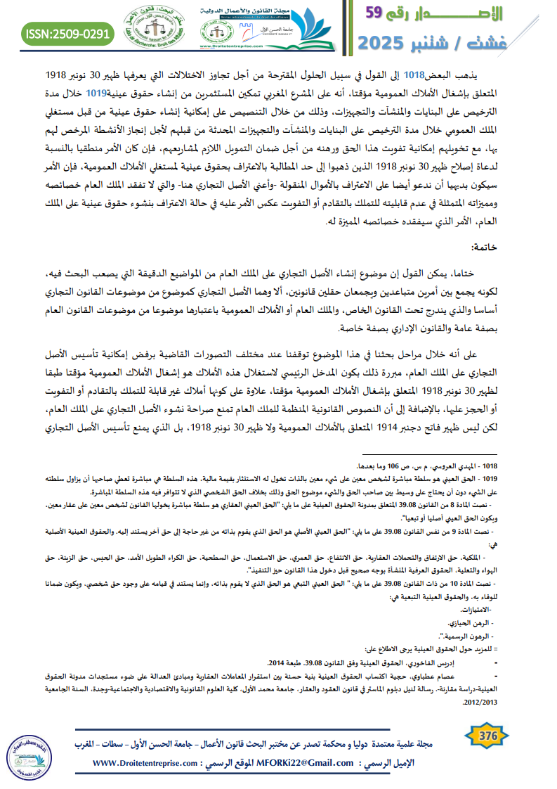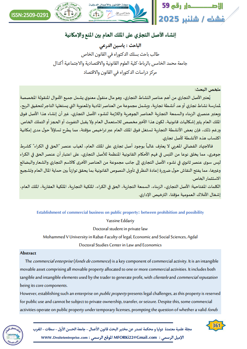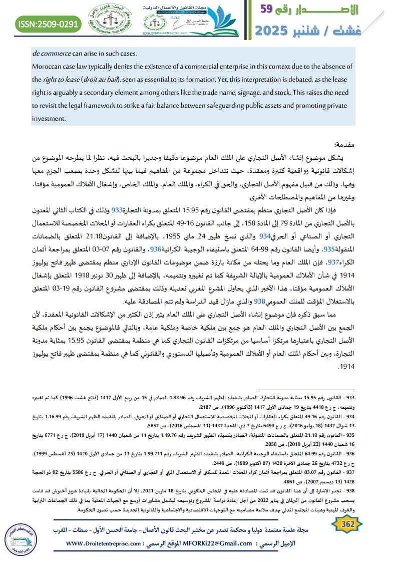 إنشاء الأصل التجاري على الملك العام بين المنع والإمكانية الباحث : ياسين الدرعي