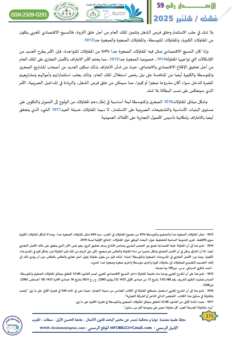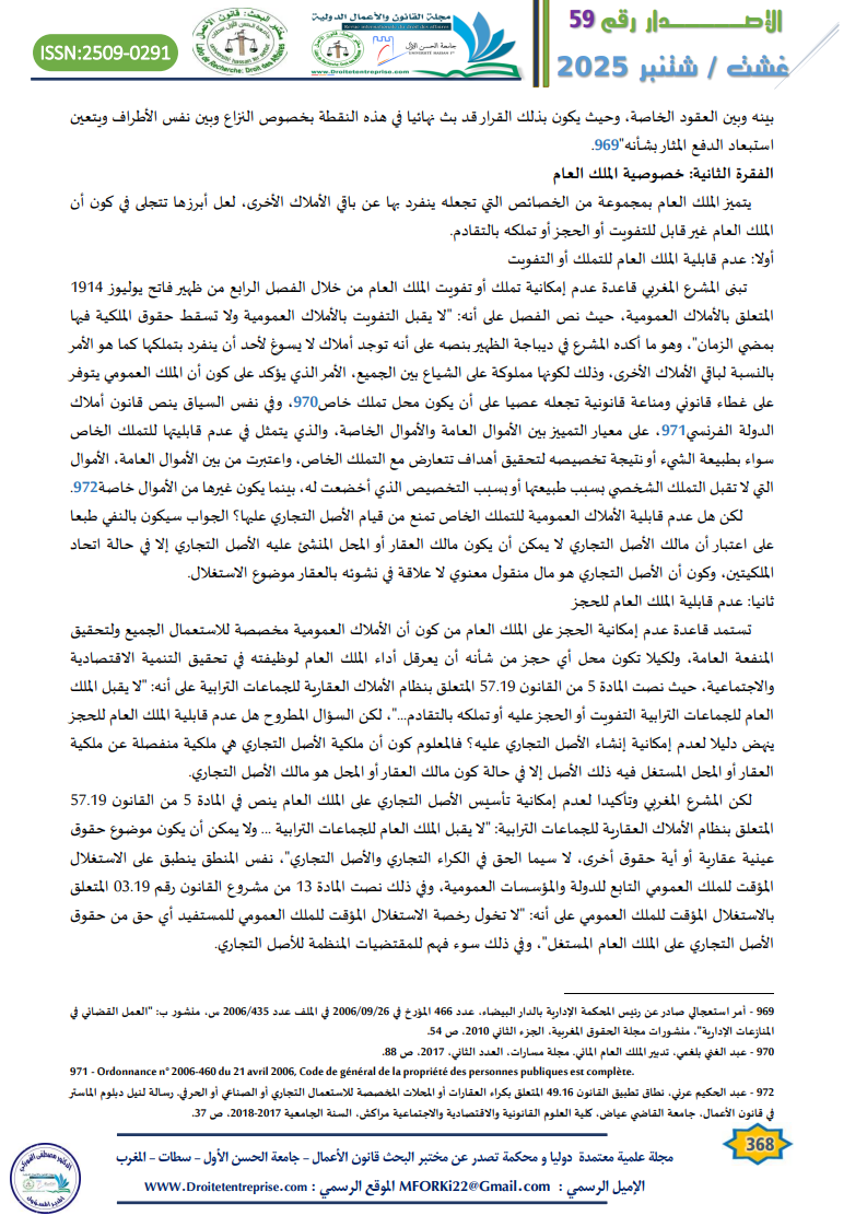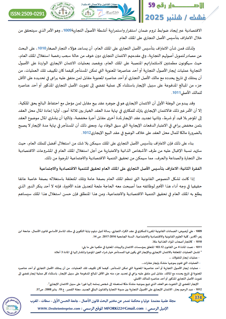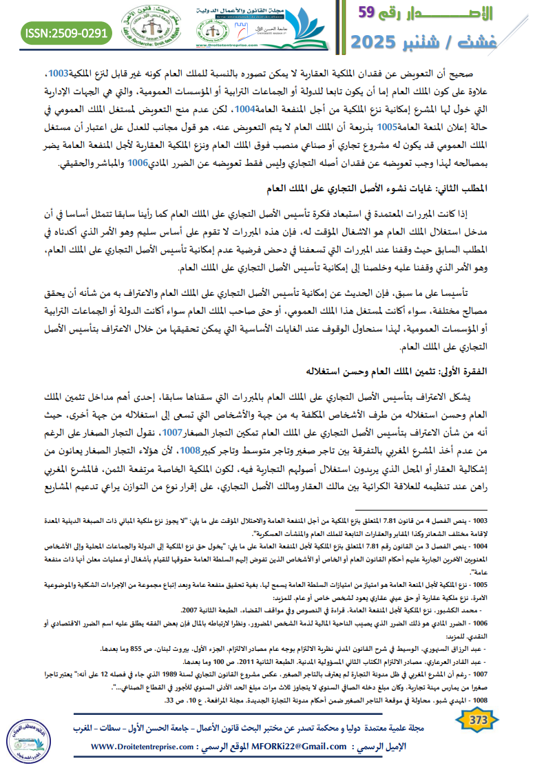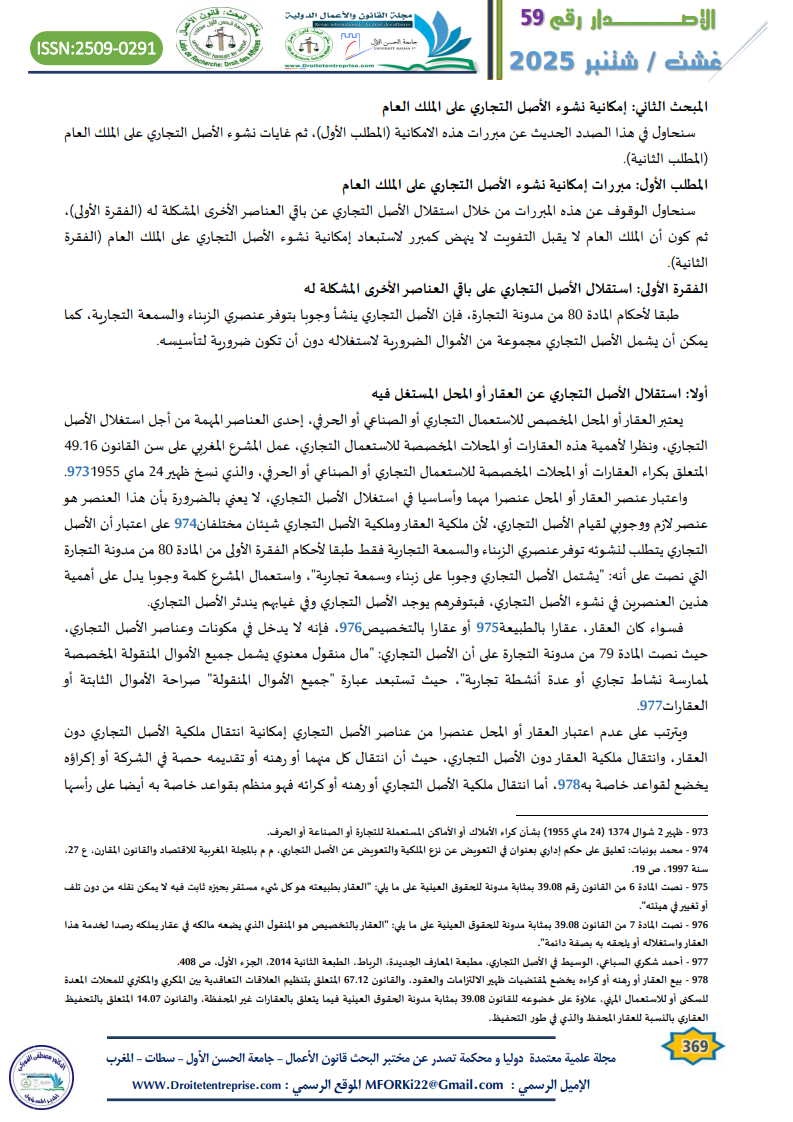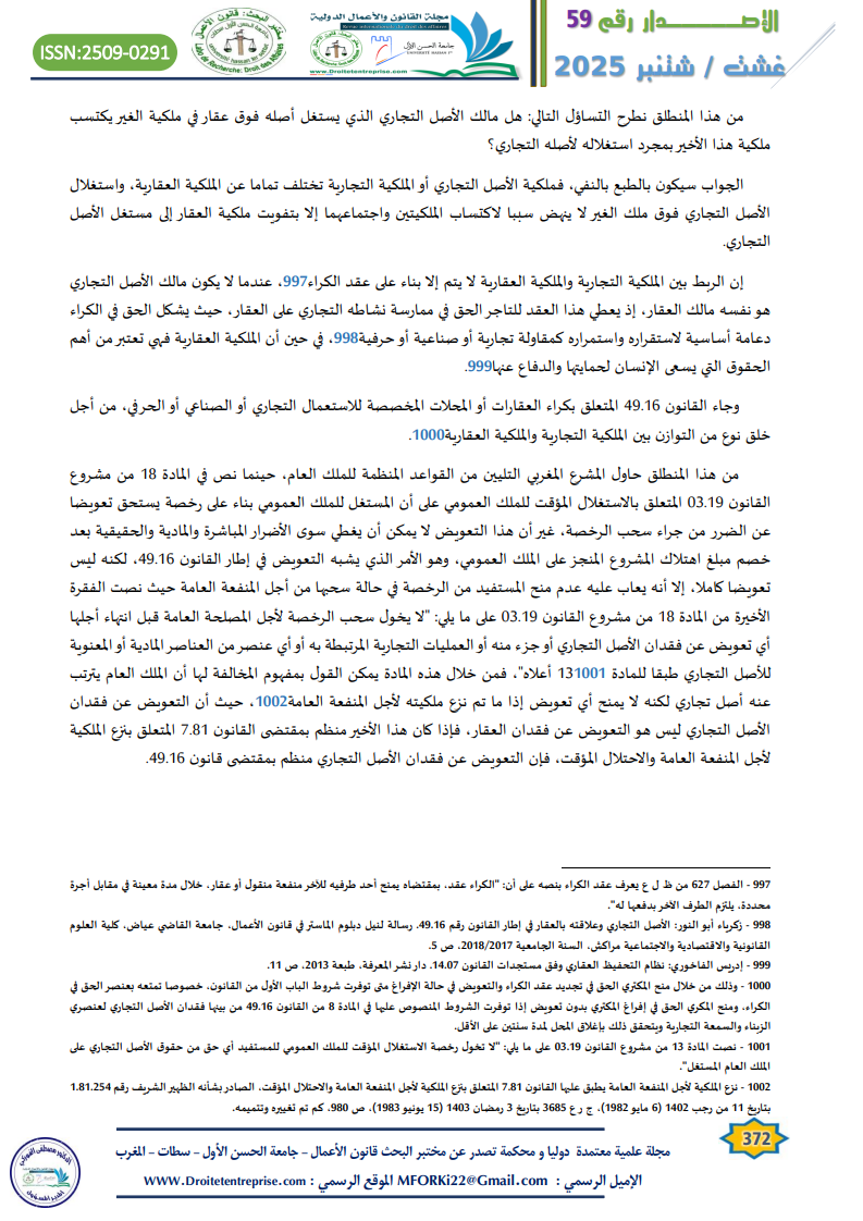 إنشاء الأصل التجاري على الملك العام بين المنع والإمكانية الباحث : ياسين الدرعي