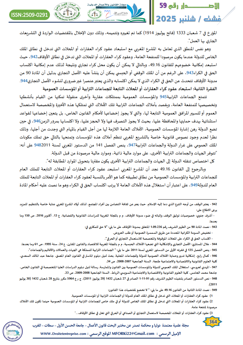 31. – أجعواني الناجي، تدبير الملك العمومي للدولة –منطقة الرباط نموذجا-. رسالة لنيل شهادة الماستر في القانون العام والعلوم السياسية، تخصص الدراسات الإدارية والمالية، جامعة محمد الخامس، كلية العلوم القانونية والاقتصادية والاجتماعية أكدال-الرباط، السنة الجامعية 2015-2016، ص 83.