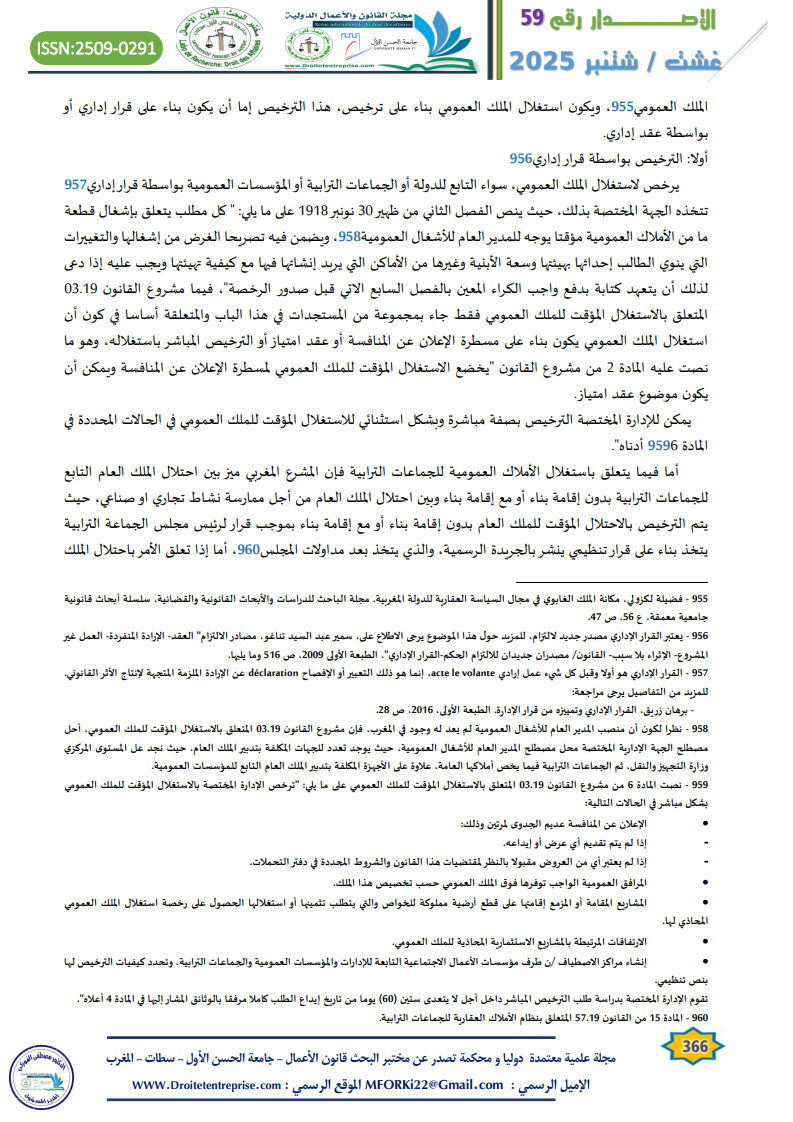 الفقرة الأولى: الاشغال المؤقت للملك العمومي المدخل الرئيسي لاستغلاله
