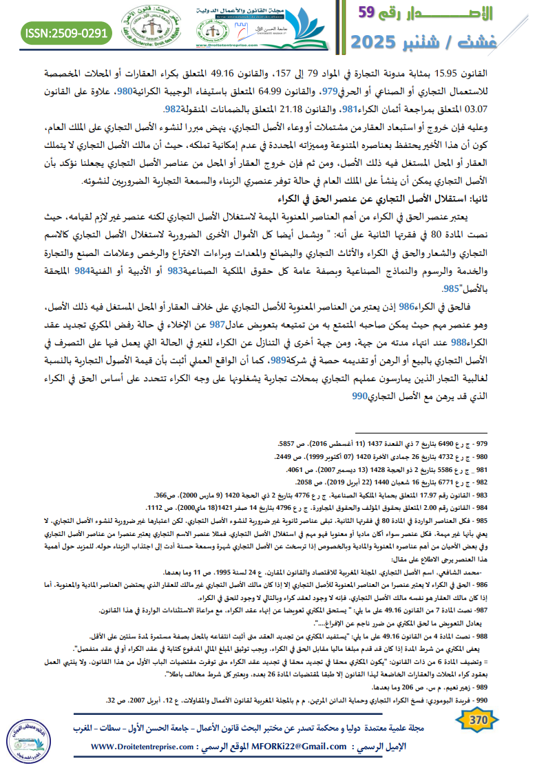 ثانيا: استقلال الأصل التجاري عن عنصر الحق في الكراء