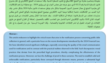 التبليغ الالكتروني في ميدان تحصيل الديون العمومية بين الواقع والمأمول Electronic Notification in the Field of Public Debt Recovery Between…
