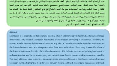التدليس في البيوع “دراسة بين الفقه الإسلامي والقانون المدني المغربي” Fraud in sales« A Comparitive Study between Islamic Jurisprudence and…
