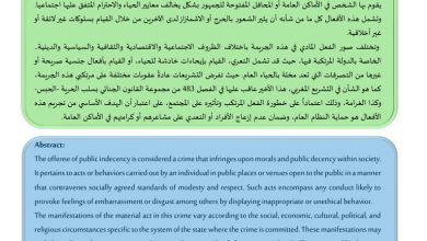 جريمة الإخلال العلني بالحياء في التشريع المغربي -دراسة في شقها الموضوعي- The crime of public indecency -A study in…