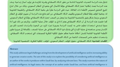الآثار القانونية لمنح الــذكاء الاصطناعي صفة المؤلف Legal Effects of Granting Artificial Intelligence Authorship الباحثة لجين فهد الحارثي…