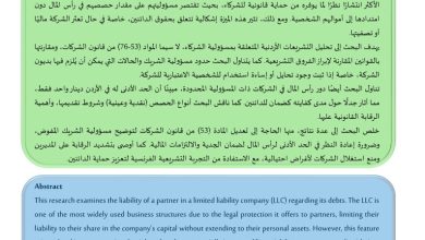 مسؤوليه الشريك في الشركة ذات المسؤوليه المحدودة عن ضمان ديونها The Liability of a Partner in a Limited Liability Company…