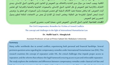 التعويض المدني لمتضرري النزاعات المسلحة المفهوم والتحديات في ظل القانون الدولي الإنساني الدكتور : مفلح بن سعود بن…