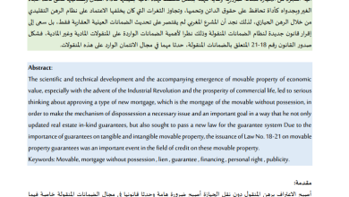 إقرار رهن المنقول دون نقل الحيازة الوارد على المنقولات المادية وغير المادية The consecration of the pledge of tangible and…
