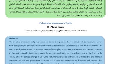 استقلاليّة المجالس النيابيّة في تونس الدكتور : أحمد حمزة أستاذ مساعد بكليّة الحقوق، جامعة الملك فيصل بالمملكة العربيّة السعوديّة رابط…