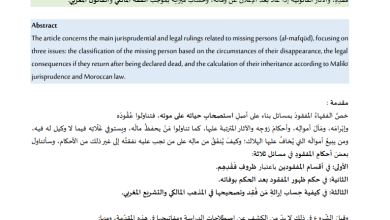 المَفْقُودُ: أحكامُه، وتطبيقاتٌ في كيفيةِ حِسَابِ إِراثَتِهِ وتصحيحِها في المذهب المالكي والتَّشريع المغربي The missing person: rulings and inheritance calculation…