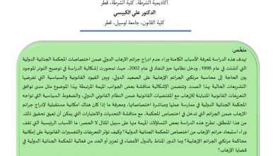 جرائم الإرهاب الدولي: دراسة تحليلية لأسباب استبعادها من نطاق اختصاص المحكمة الجنائية الدولية والآثار المترتبة على ذلك Crimes of…