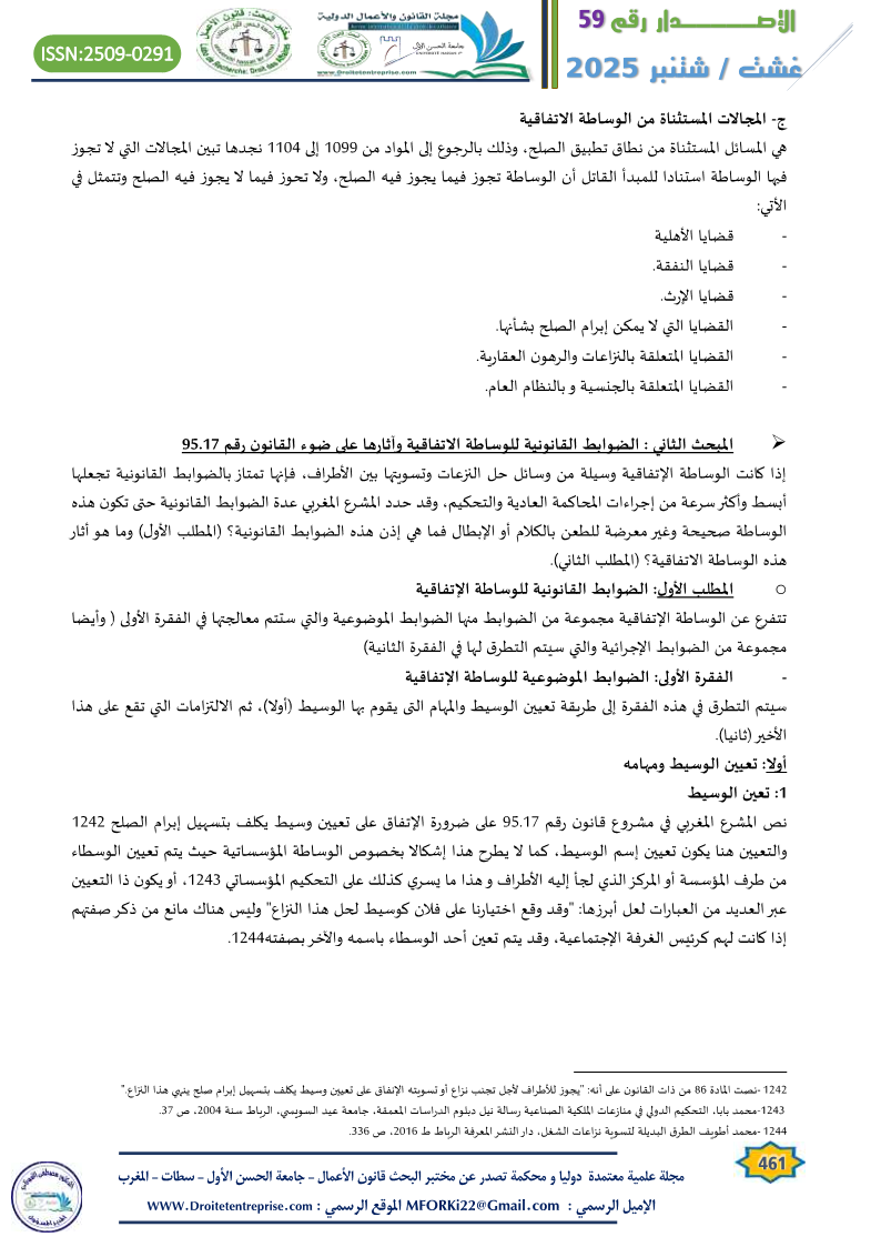 - المبحث الثاني : الضوابط القانونية للوساطة الاتفاقية وأثارها على ضوء القانون رقم95.17