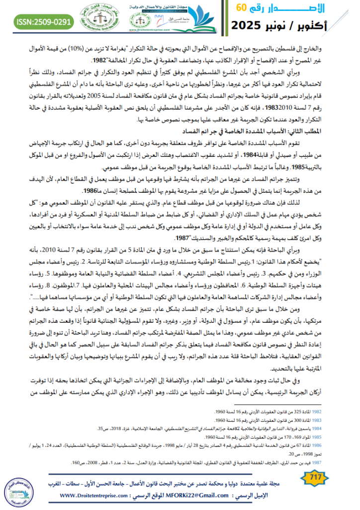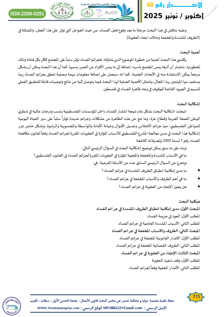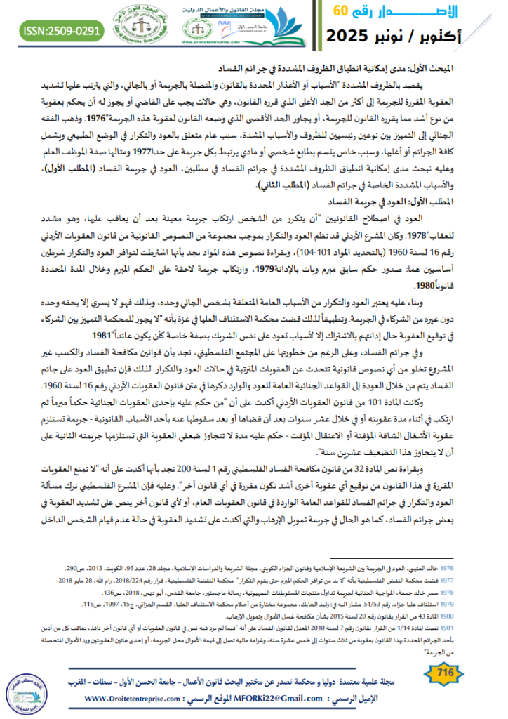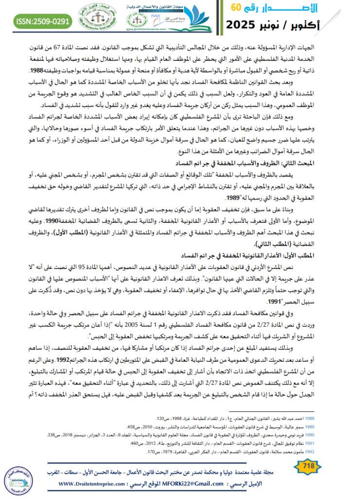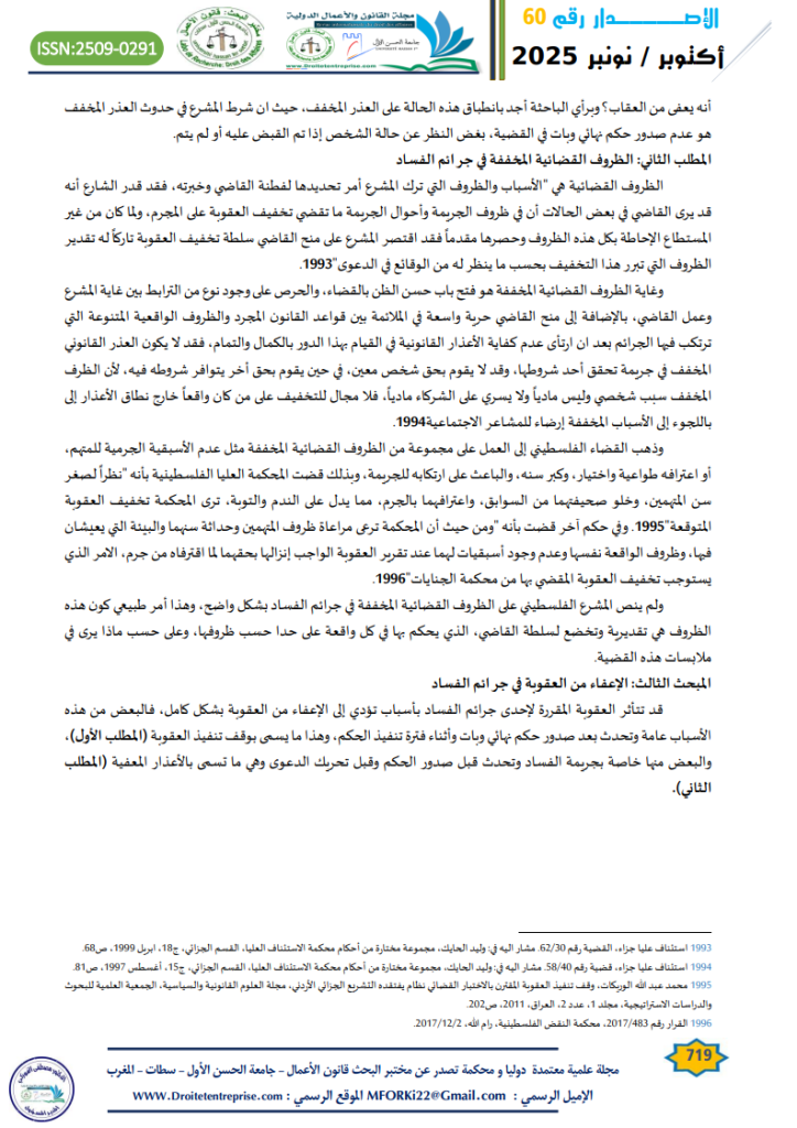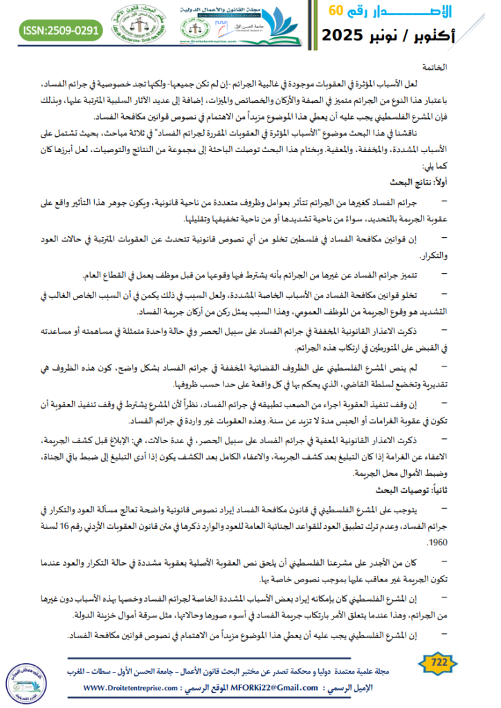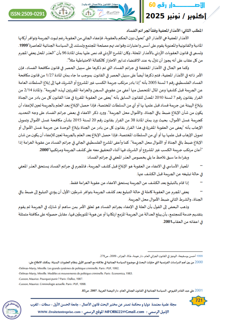 الكلمات المفتاحية: جرائم الفساد; الاعذار القانونية “; الأسباب المشددة
