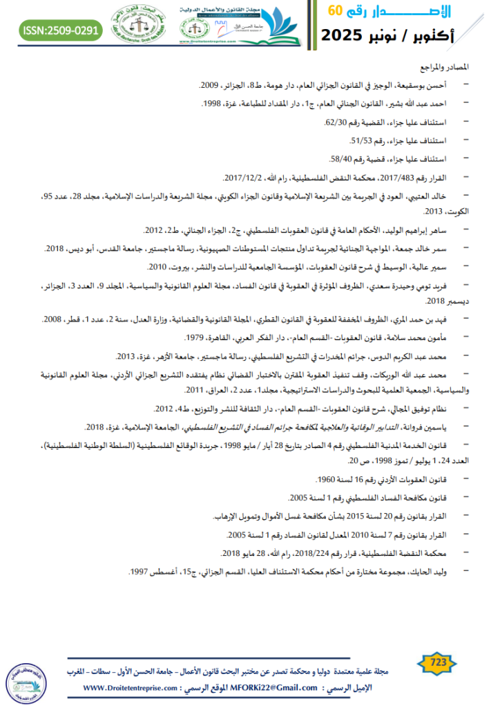- فريد تومي وحيدرة سعدي، الظروف المؤثرة في العقوبة في قانون الفساد، مجلة العلوم القانونية والسياسية، المجلد 9، العدد 3، الجزائر، ديسمبر 2018، ص338. ↑