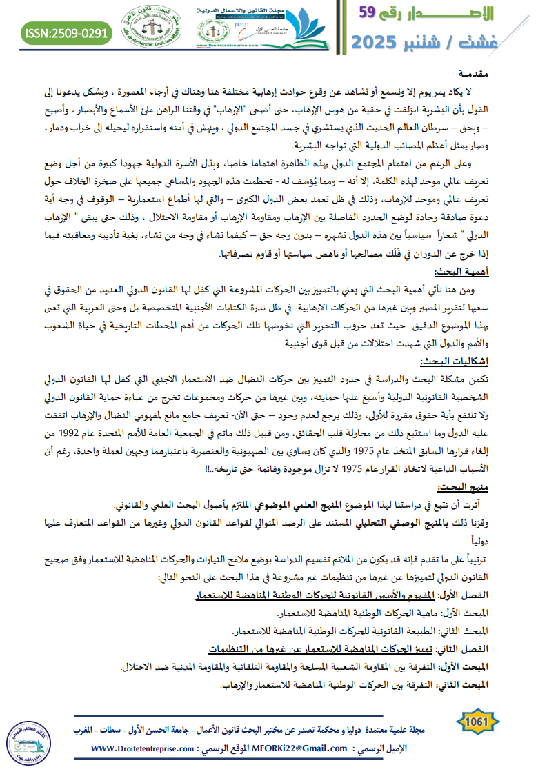 هذا البحث منشور في مجلة القانون والأعمال الدولية الإصدار رقم 59 الخاص بشهر غشت / شتنبر 2025