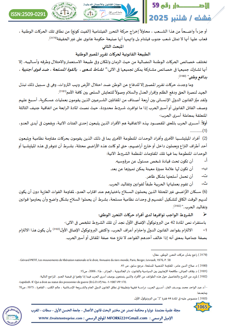 الطبيعة القانونية لحركات تقرير المصير الوطنية