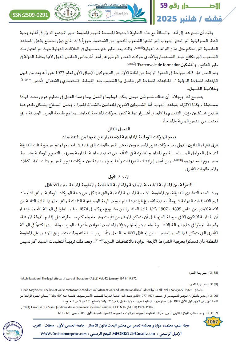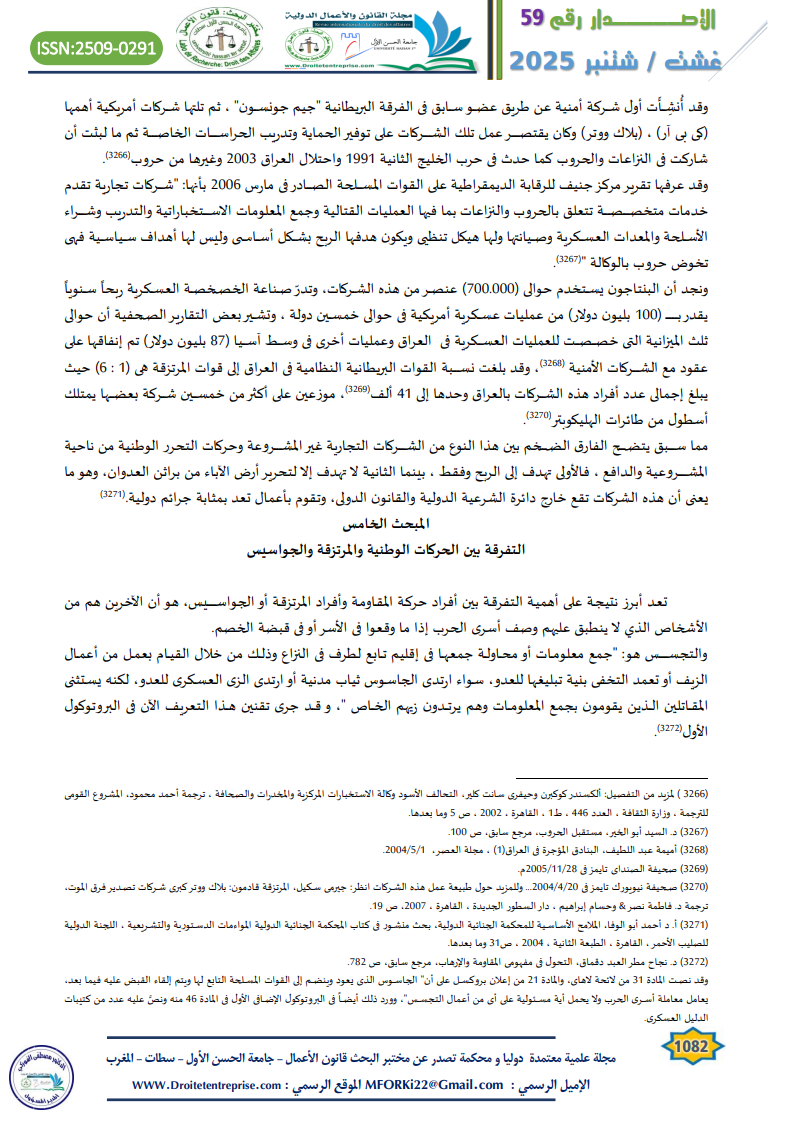 المبحث الخامس: التفرقة بين الحركات الوطنية والمرتزقة والجواسيس.