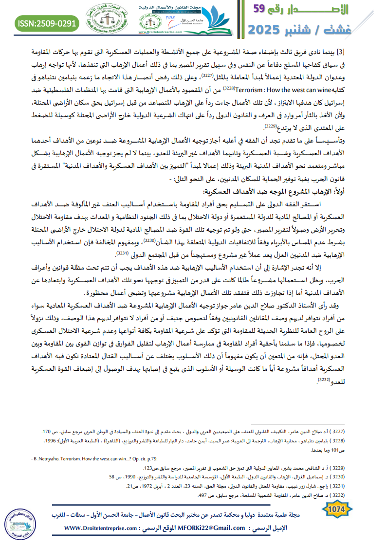 - ( ) للمزيد حول حجج هذا الاتجاه راجع:* د. الشافعى محمد بشير، المعايير الدولية التى تميز حق الشعوب فى تقرير المصير والكفاح المسلح عن الإرهاب الدولى، مجلة الحق، السنة 19، العدد 201، 1998 ، ص 123.