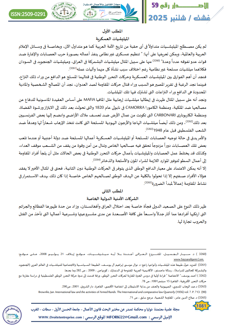 المبحث الرابع: التفرقة بين الحركات الوطنية والميليشيات العسكرية والشركات الأمنية.