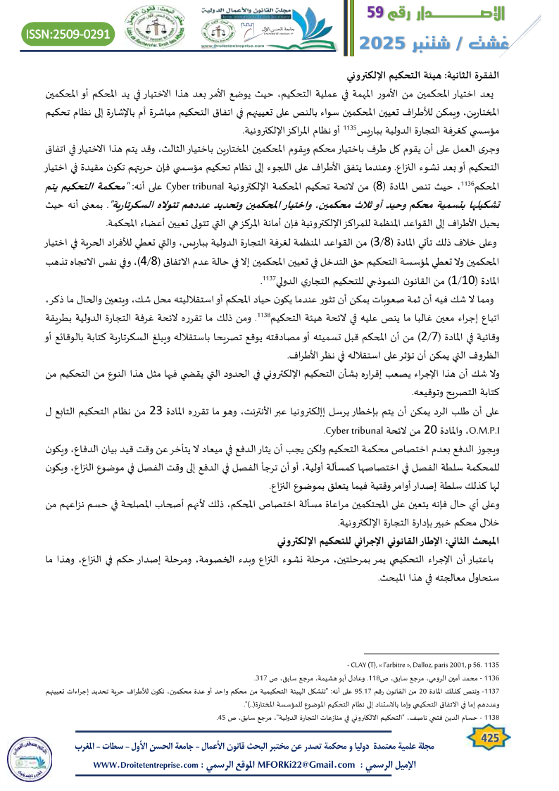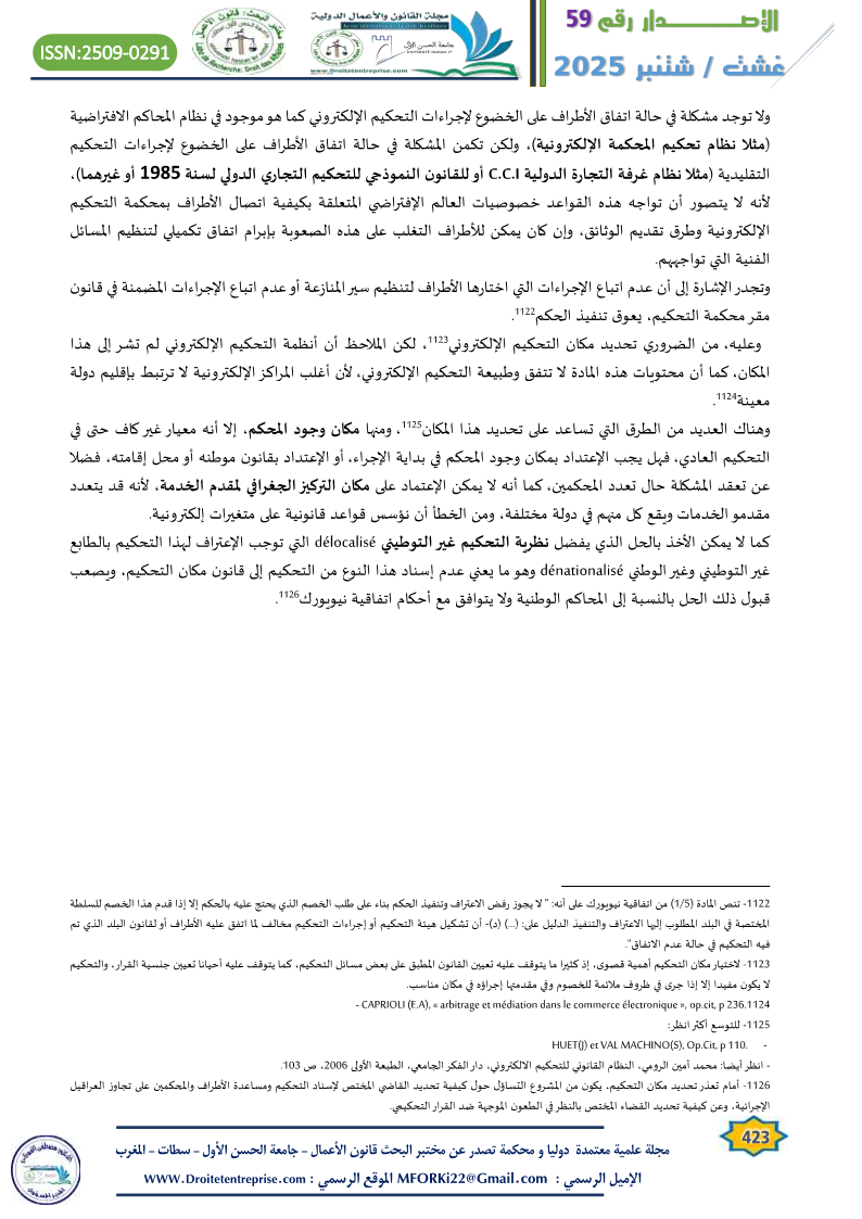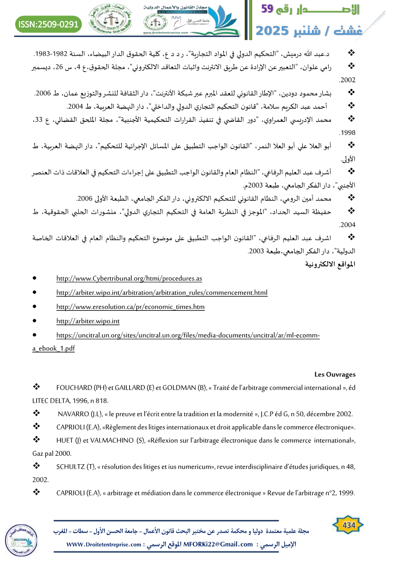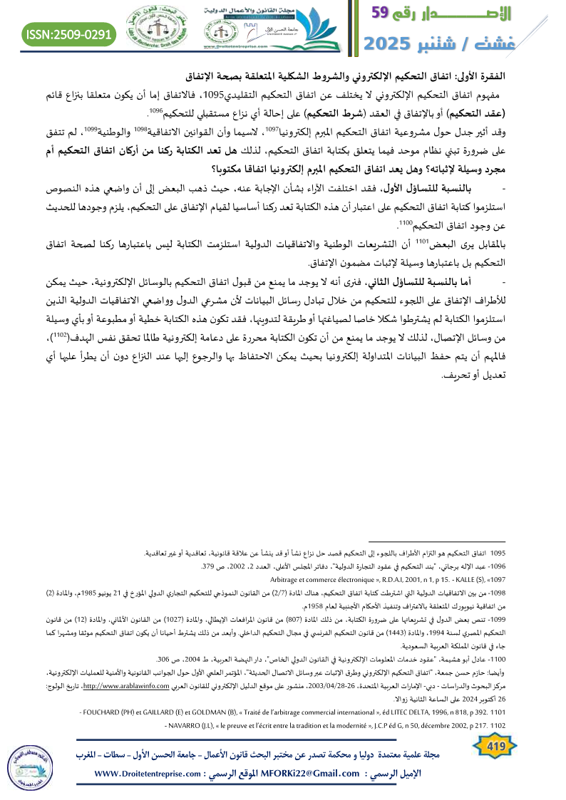 – انظر أيضا: محمد أمين الرومي، النظام القانوني للتحكيم الالكتروني، دار الفكر الجامعي، الطبعة الأولى 2006، ص 103.