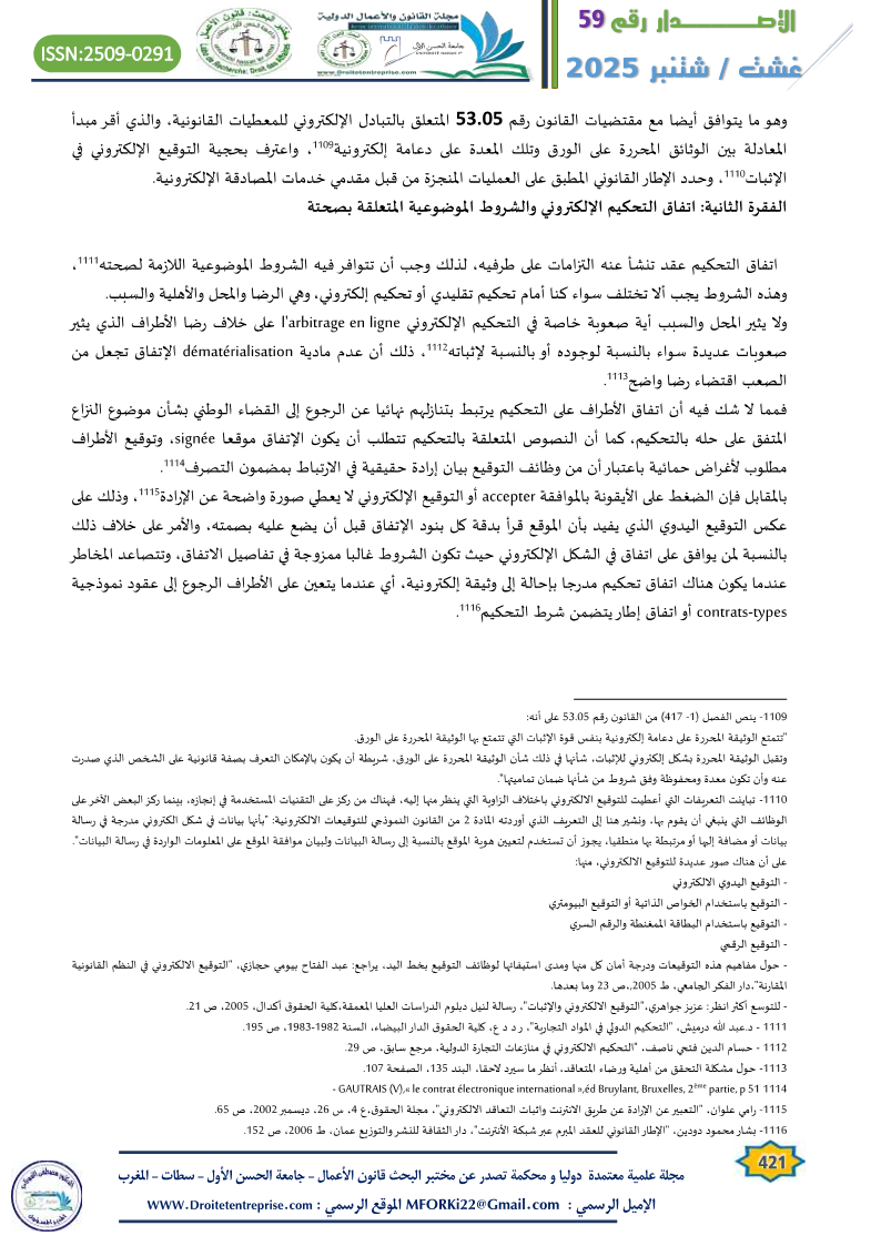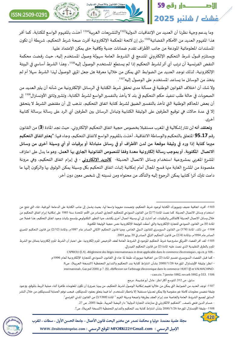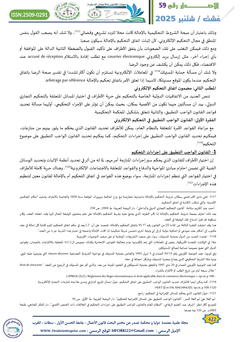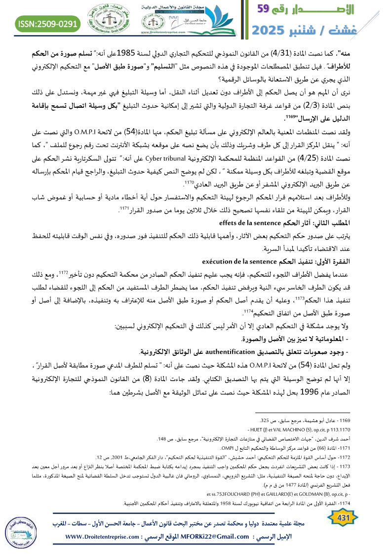 – انظر أيضا: محمد أمين الرومي، النظام القانوني للتحكيم الالكتروني، دار الفكر الجامعي، الطبعة الأولى 2006، ص 103.