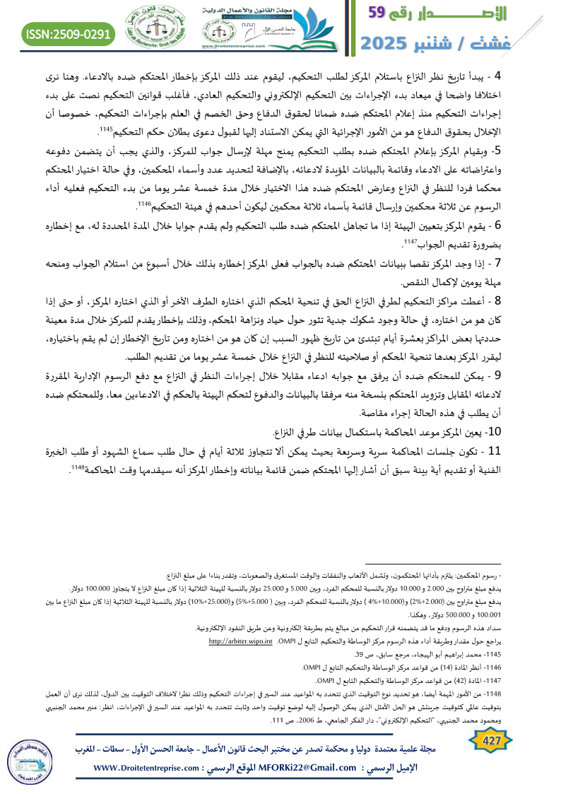 58. – انظر المادة (41) من قواعد مركز الوساطة والتحكيم التابع ل OMPIhttp://arbiter.wipo.int