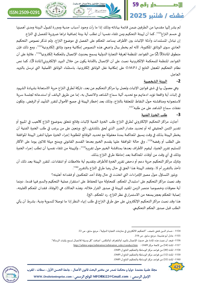 73. – المادة (54) من لائحة مركز OMPI : http://arbitre.wipo/arbitration/arbitration_rules/conduct.htm