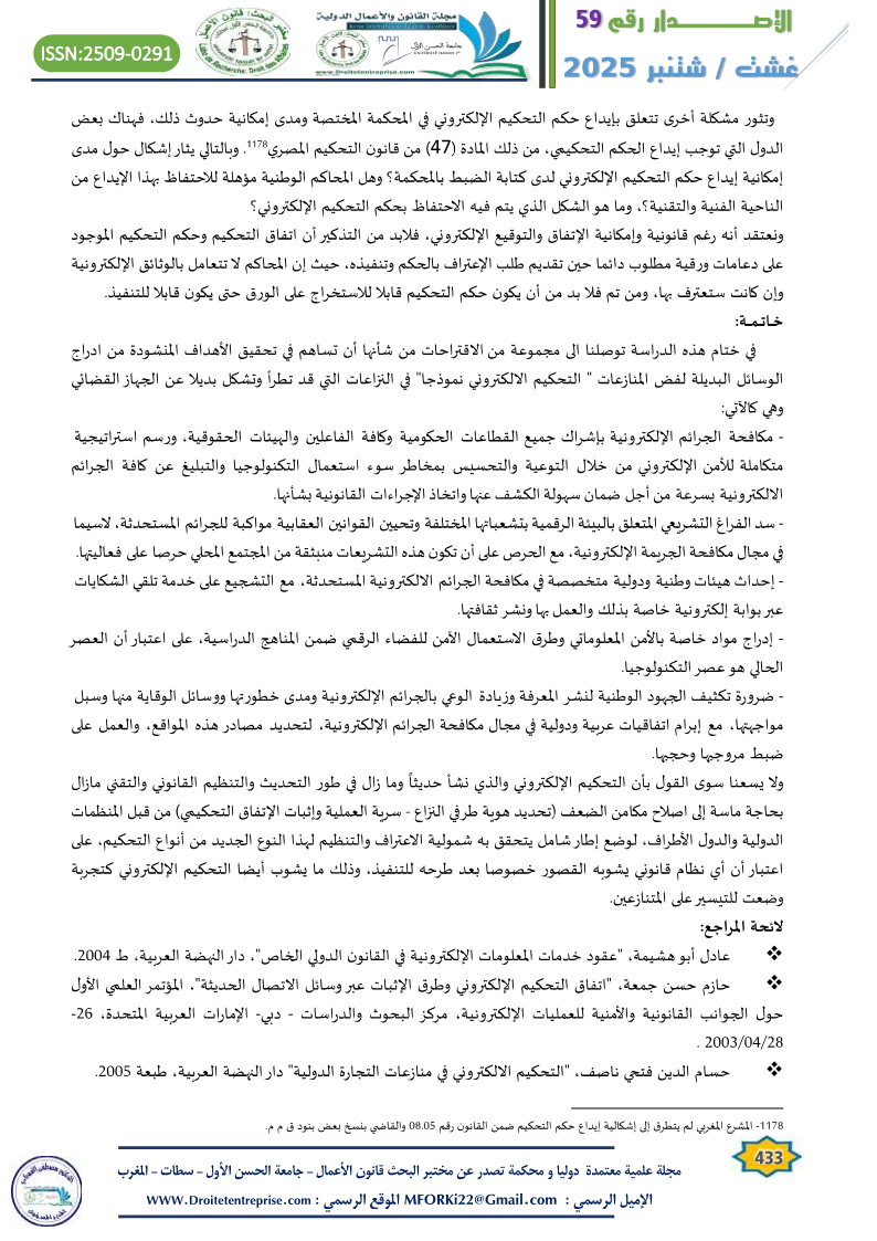 هذا البحث منشور في مجلة القانون والأعمال الدولية الإصدار رقم 59 الخاص بشهر غشت / شتنبر 2025