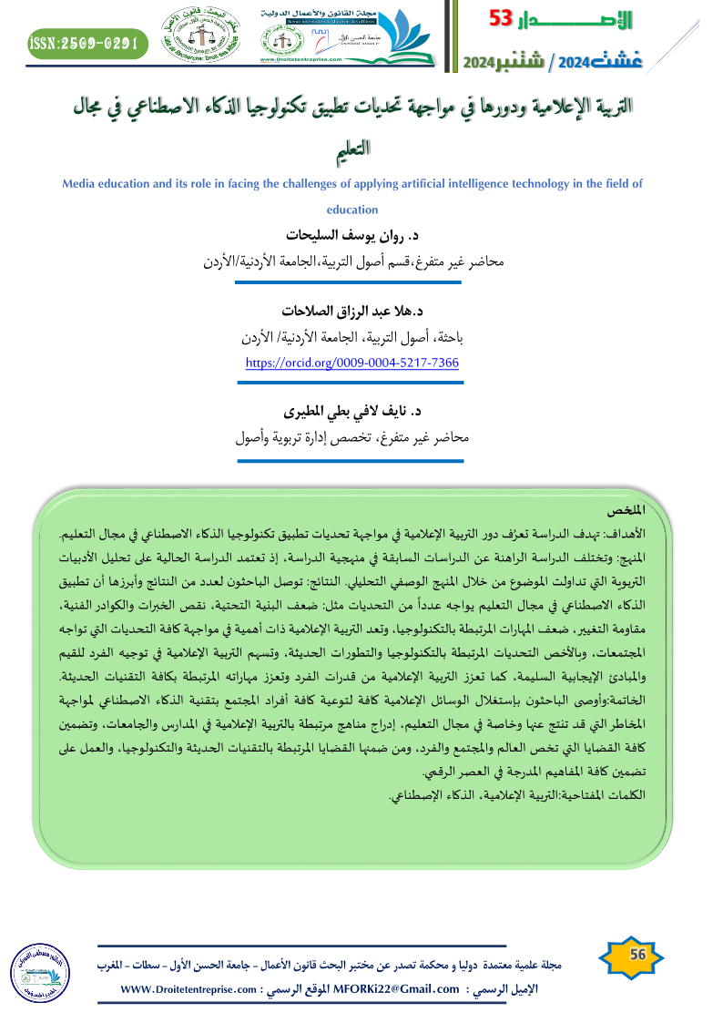 الكلمات المفتاحية:التربية الإعلامية، الذكاء الإصطناعي.