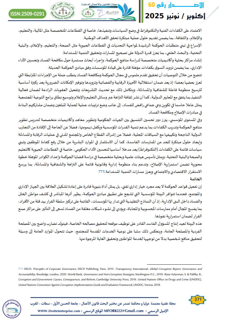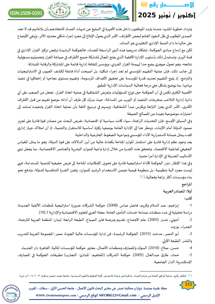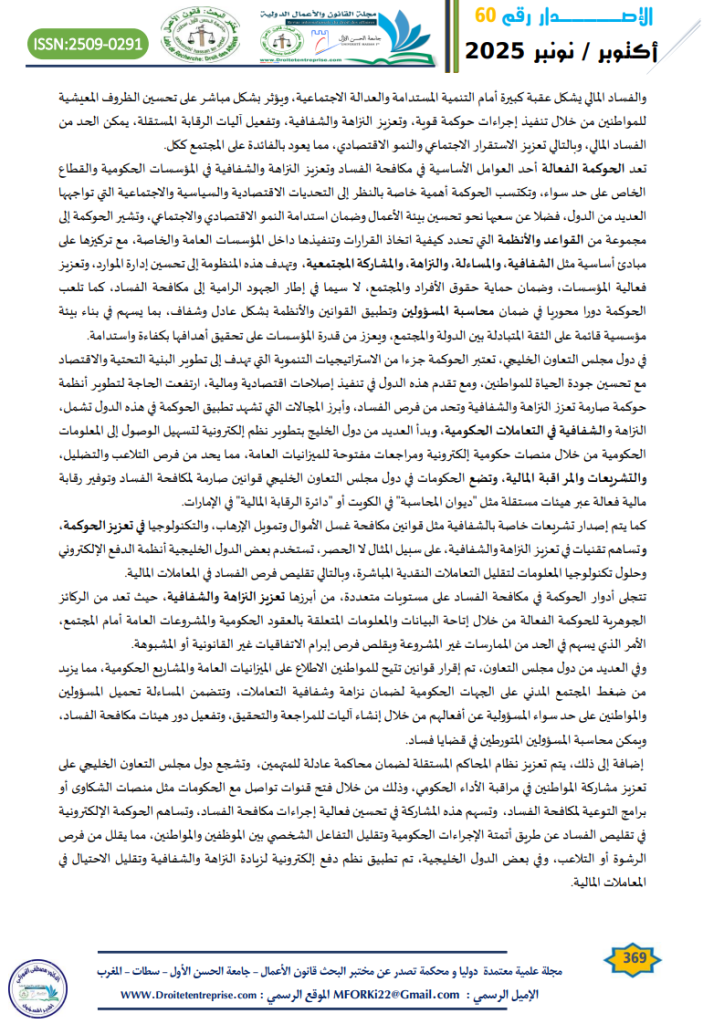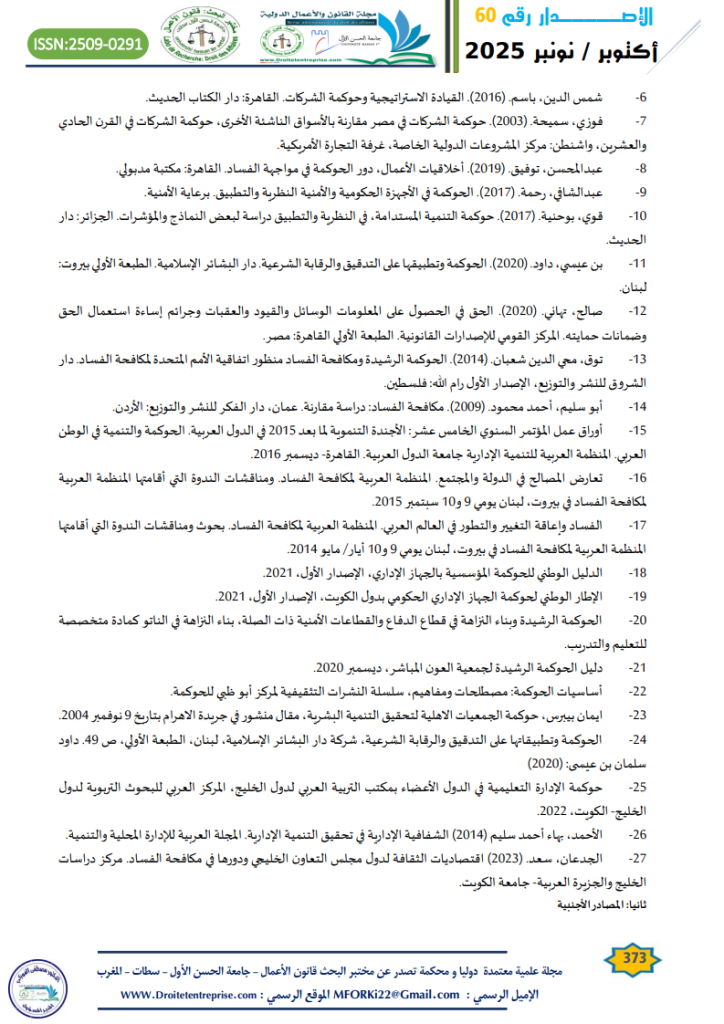 الحوكمة كآلية قانونية استراتيجية لتعزيز النزاهة ومكافحة الفساد: دراسة تحليلية مقارنة