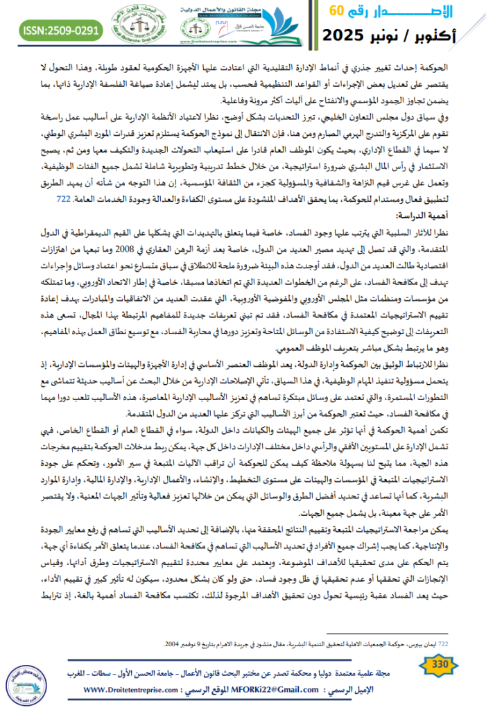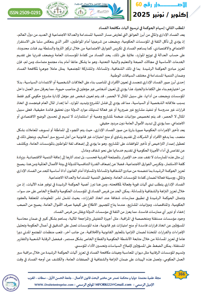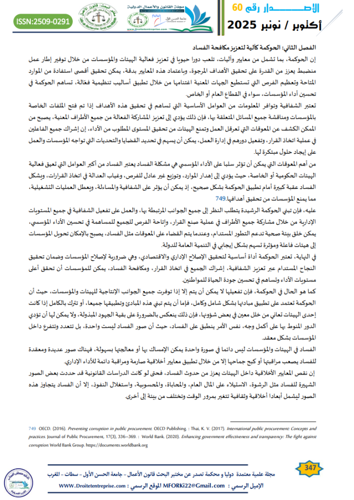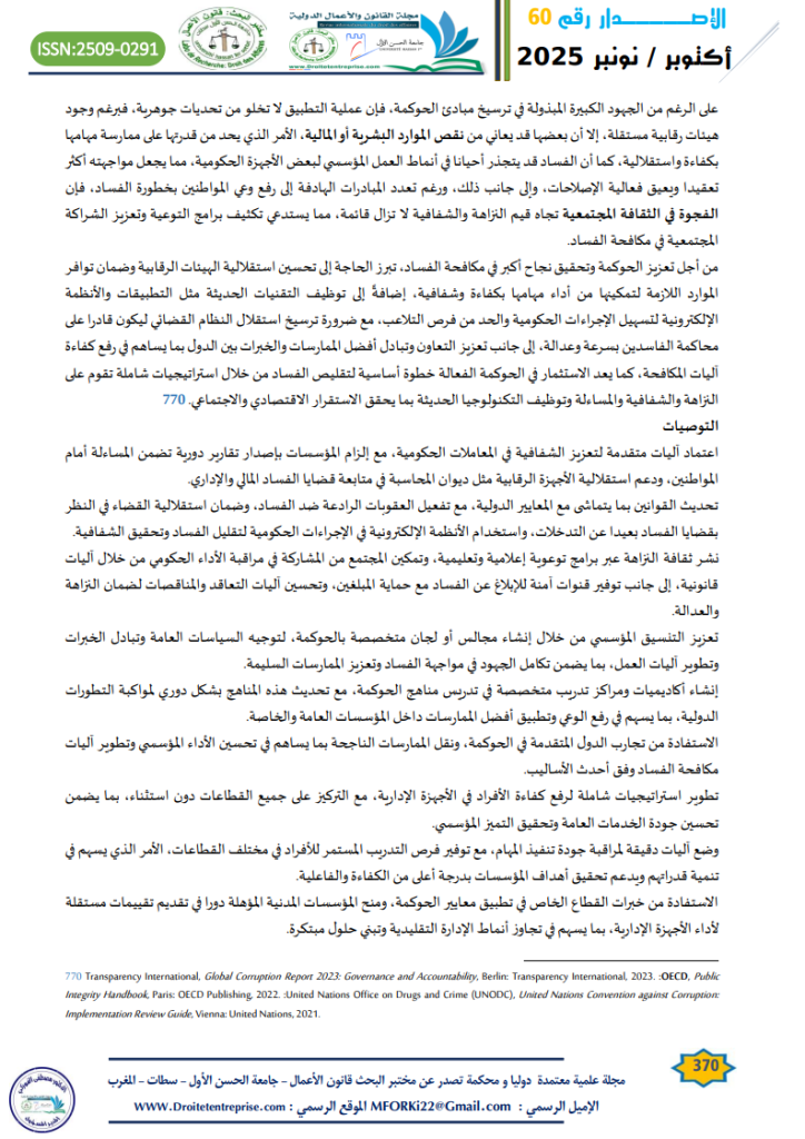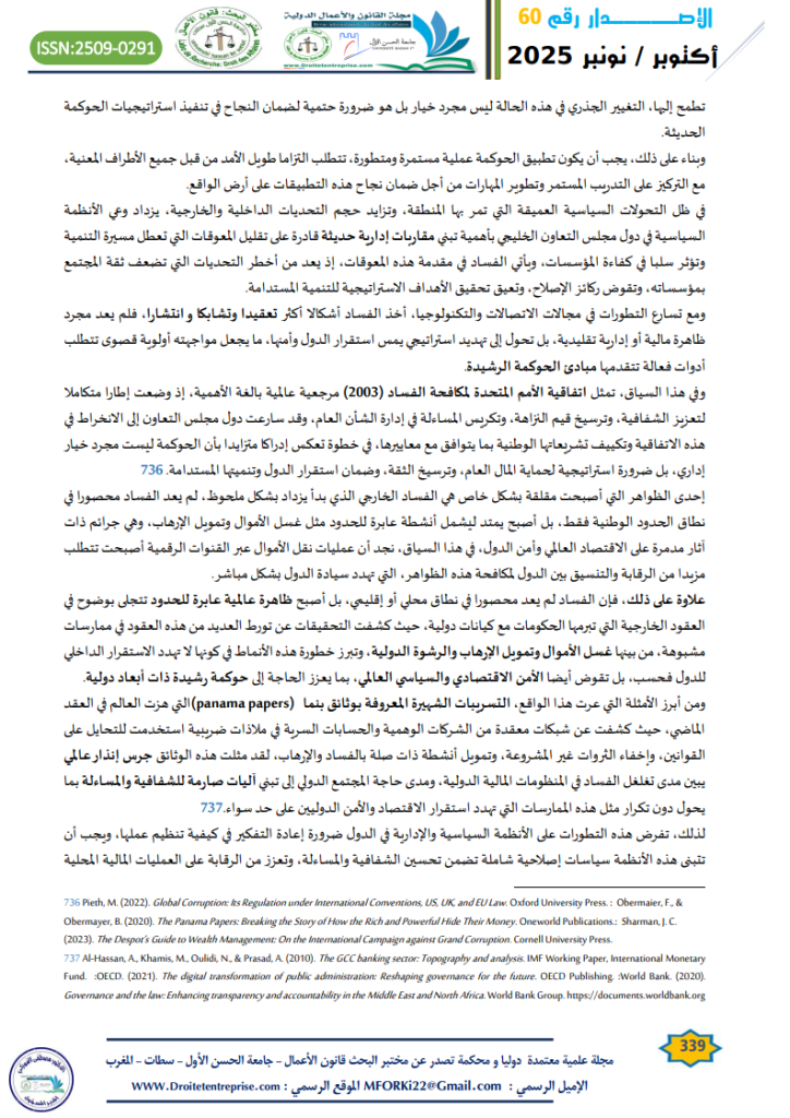 الحوكمة كآلية قانونية استراتيجية لتعزيز النزاهة ومكافحة الفساد: دراسة تحليلية مقارنة