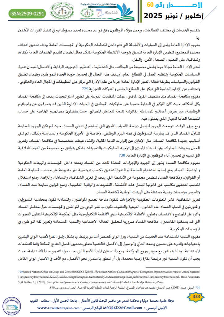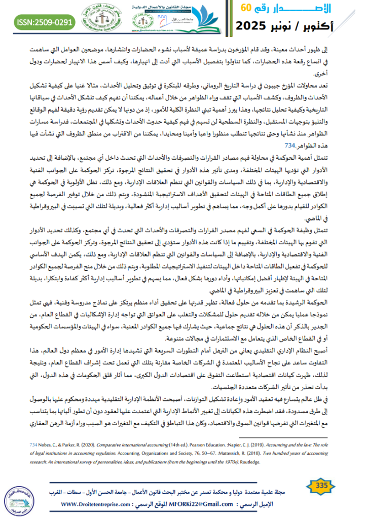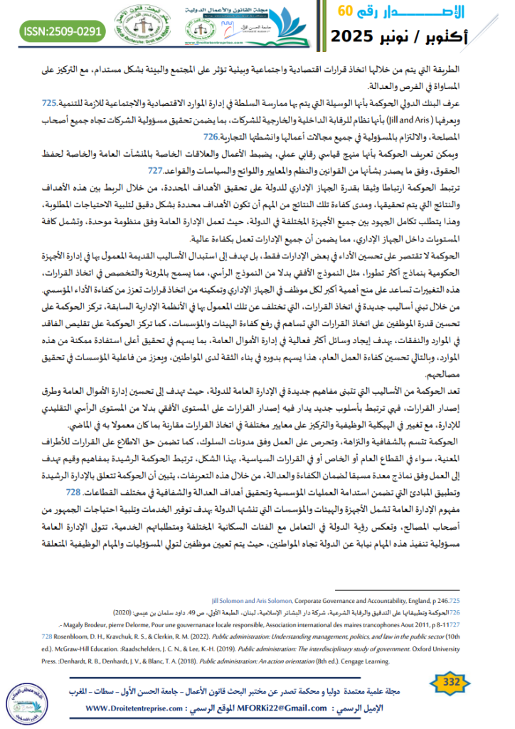 الكلمات المفتاحية: الحوكمة؛ الإدارة العامة؛ المساءلة؛ الرقابة؛ العنصر البشري؛ القطاع العام؛ القطاع الخاص.