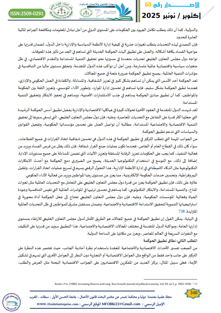 لقد أولت دول مجلس التعاون الخليجي اهتماما متزايدا بمفهوم الحوكمة خلال العقود الأخيرة، إدراكا منها لأهمية هذا النهج في تعزيز كفاءة الإدارة العامة وتحقيق التنمية المستدامة، وفي هذا الإطار، شرعت بعض دول المجلس في تبني مبادئ الحوكمة بصورة تدريجية؛ حيث برزت دولة الإمارات العربية المتحدة في مقدمة الدول الساعية إلى تطوير أنظمتها الإدارية وفقا لمتطلبات الحوكمة، مقدمة نموذجا إصلاحيا يعكس توجها جادا نحو ترسيخ الشفافية والمساءلة.