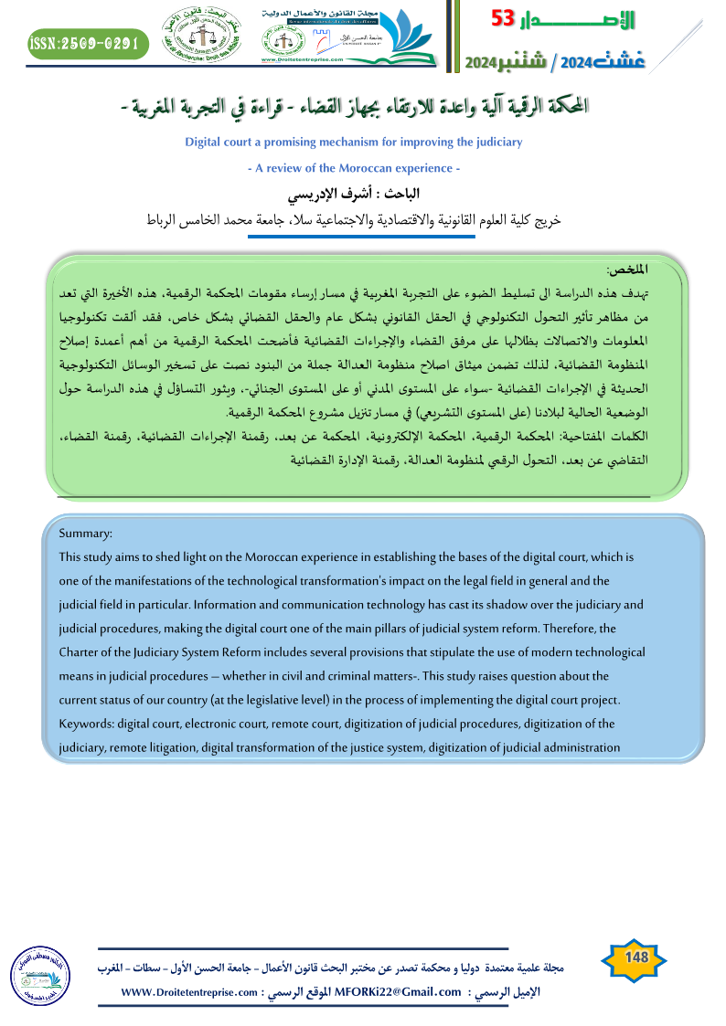 Digital court a promising mechanism for improving the judiciary - A review of the Moroccan experience -