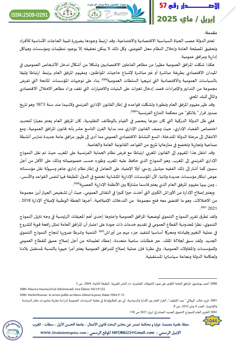 [1]ـ أحمد بوعشيق: المرافق العامة الكبرى على ضوء التحولات المعاصرة، دار النشر المغربية، الطبعة الثانية، 2004، ص 5.