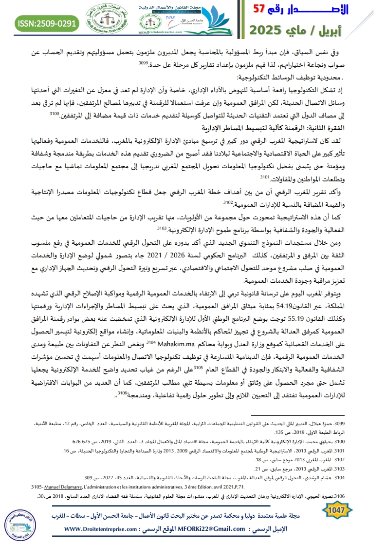 [17]– هشام الرشدي، التحول الرقمي لمرفق العدالة بالمغرب، مجلة الباحث للرسات والأبحاث القانونية والقضائية، العدد 45، 2022، ص 309.