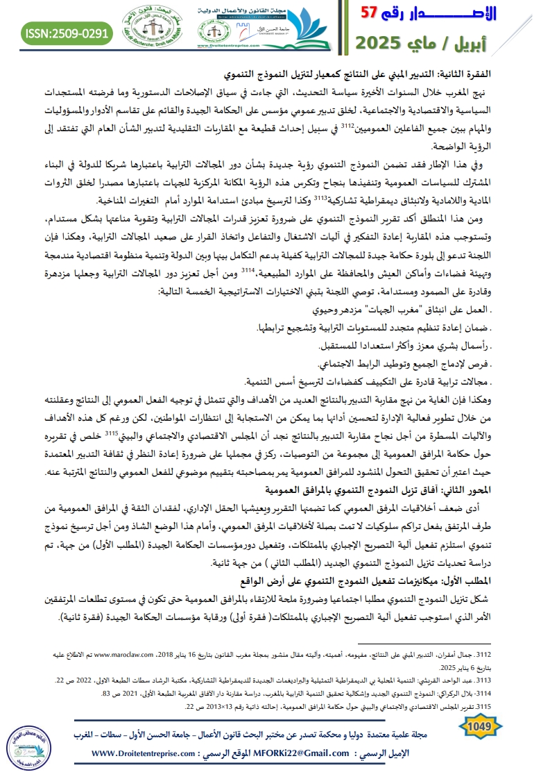 [25] ـ جمال أمقران، التدبير المبني على النتائج، مفهومه، أهميته، وآليته مقال منشور بمجلة مغرب القانون بتاريخ 16 يناير 2018، www.maroclaw.com تم الاطلاع عليه بتاريخ 6 يناير 2025.